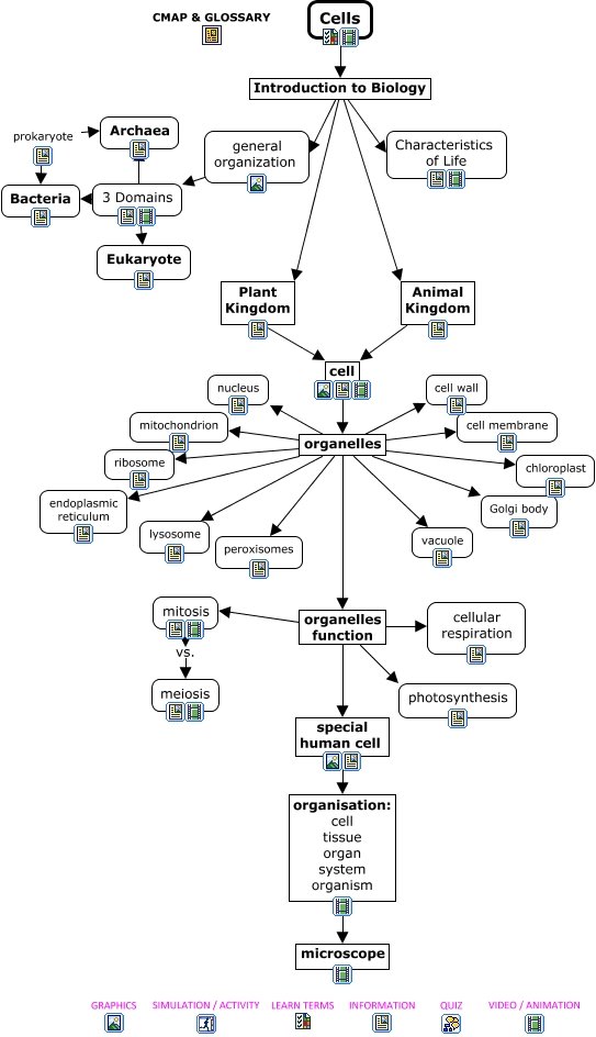 This Concept Map, created with IHMC CmapTools, has information related to: CellsCmap, organelles peroxisomes, 3 Domains Bacteria, organisation: cell tissue organ system organism microscope, organelles function photosynthesis, prokaryote Archaea, organelles chloroplast, special human cell organisation: cell tissue organ system organism, general organization 3 Domains, Introduction to Biology Characteristics of Life, organelles endoplasmic reticulum, organelles ribosome, organelles mitochondrion, cell organelles, prokaryote Bacteria, mitosis vs. meiosis, organelles cell membrane, Animal Kingdom cell, organelles function special human cell, 3 Domains Archaea, Cells Introduction to Biology